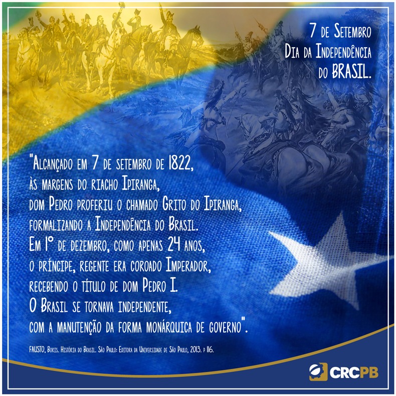 Oficialmente, a data comemorada para independência do brasil é de 7 de setembro de 1822, ocasião em que ocorreu o evento conhecido como o .